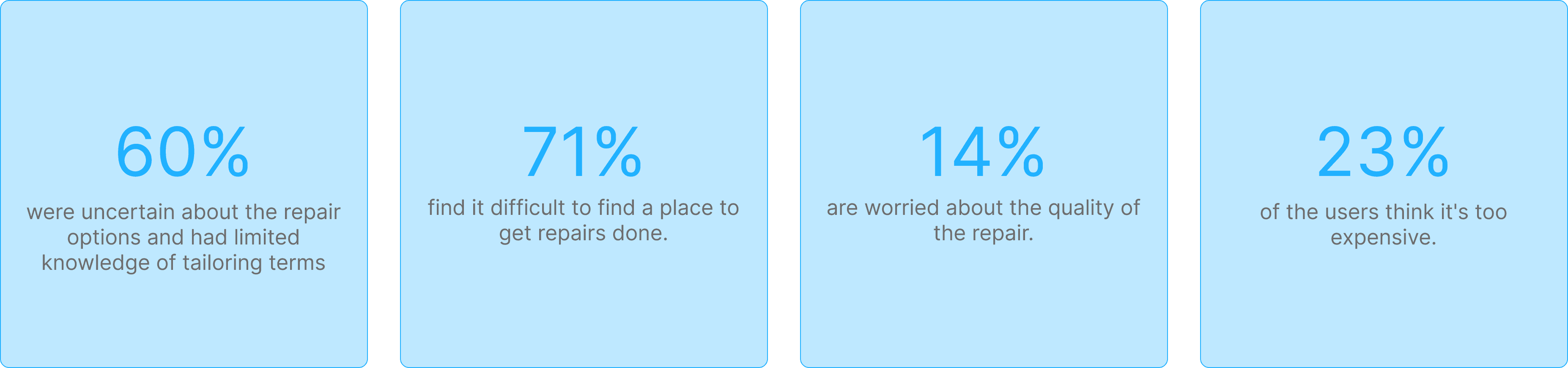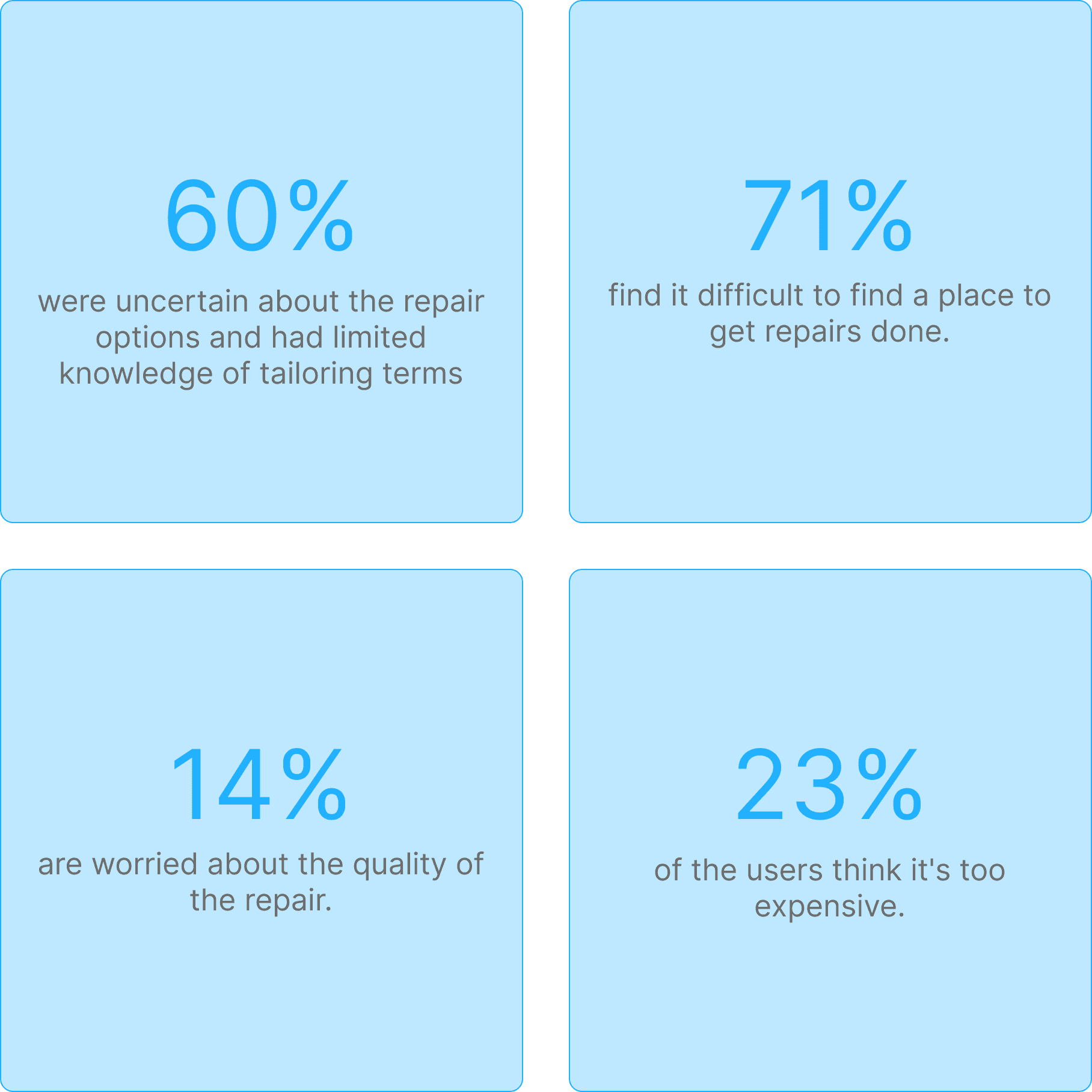 Sixty percent of users aged 20 to 40 had limited knowledge of common tailoring terms such as "seam" and "take in." This gap hindered a smooth user experience and created confusion among users when choosing a repair option.