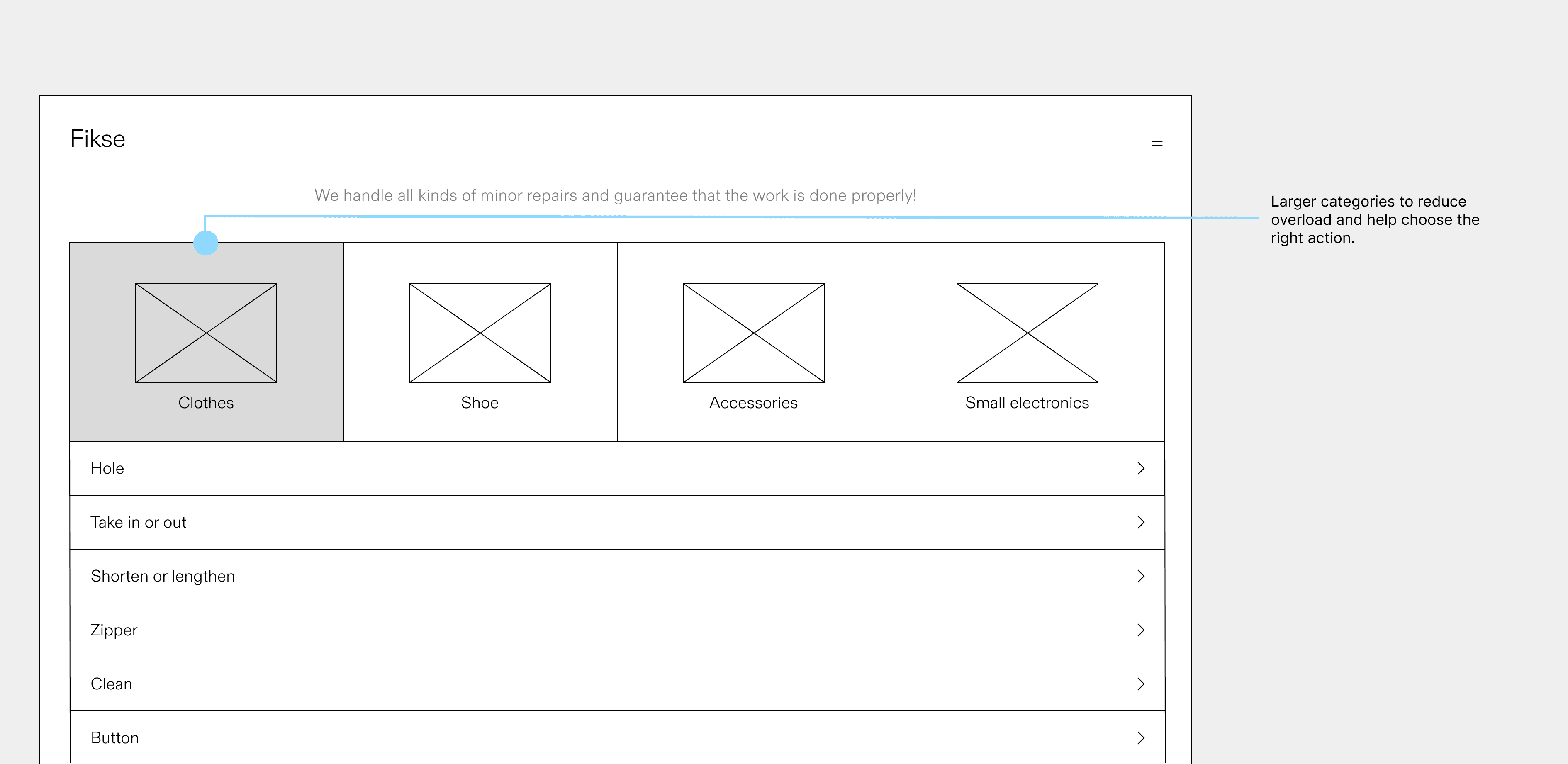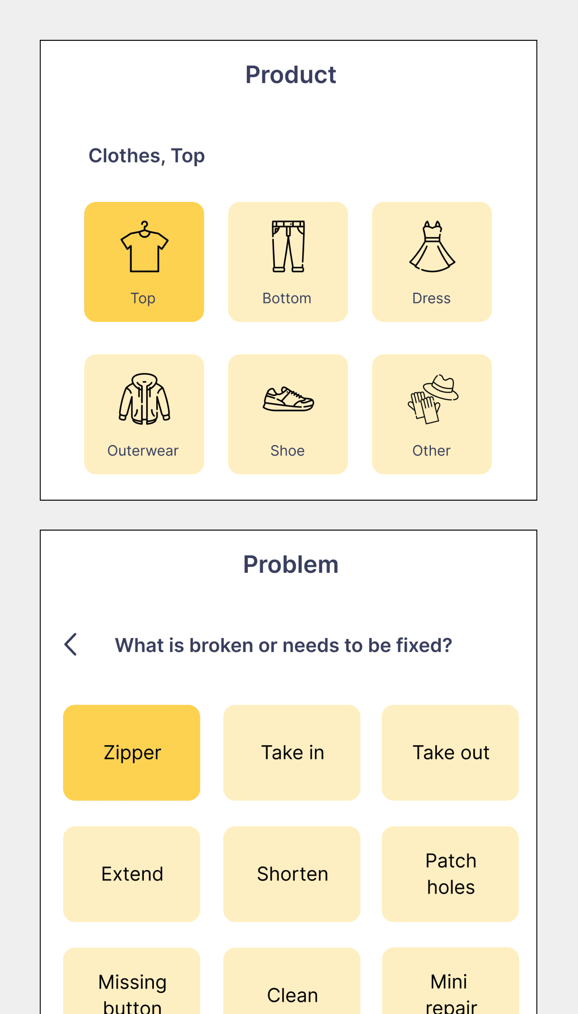 The existing design forced users to choose preset repair options without allowing them to add their own descriptions of the issue. Users could communicate with the repairer only during the physical delivery of their garments to the workshop.