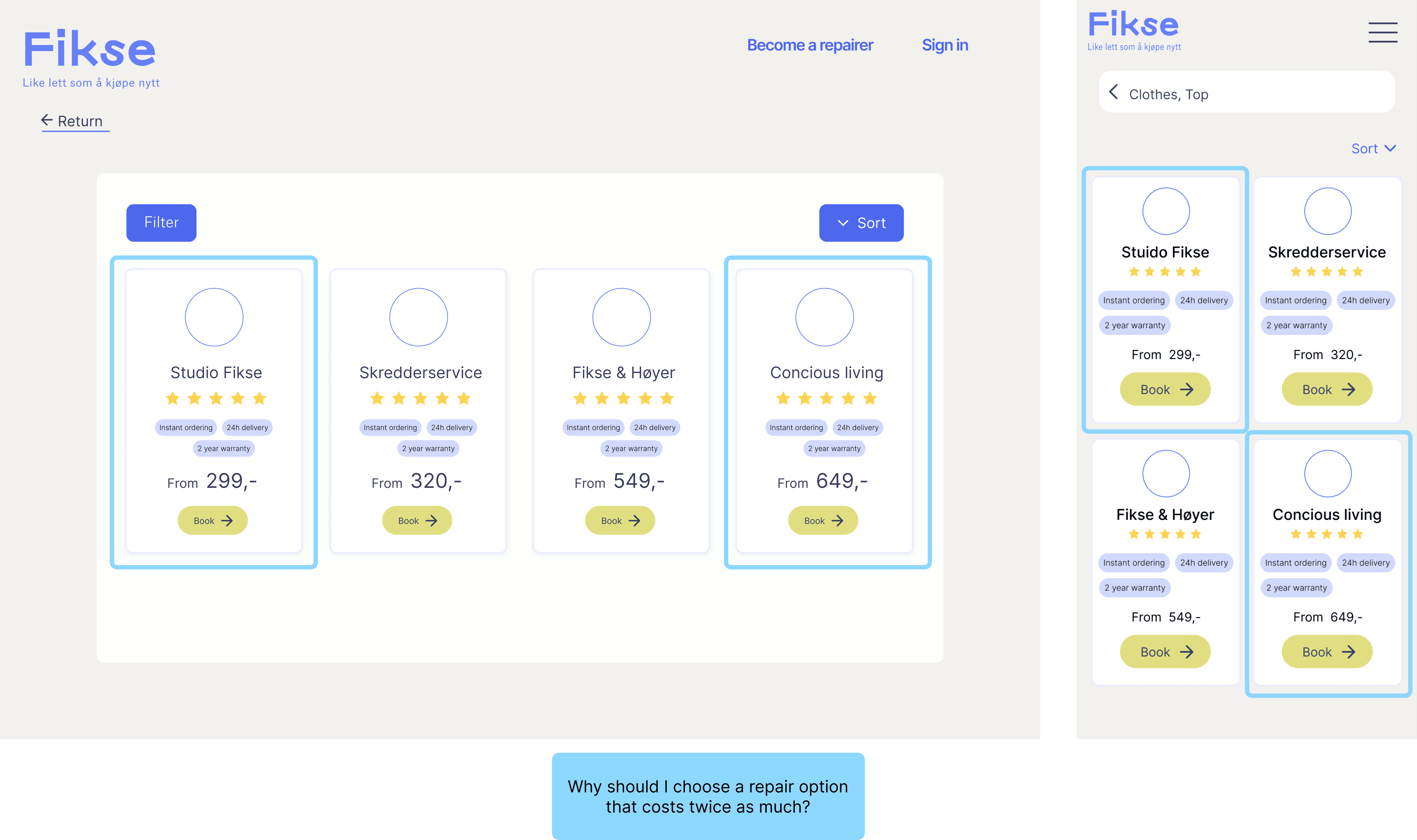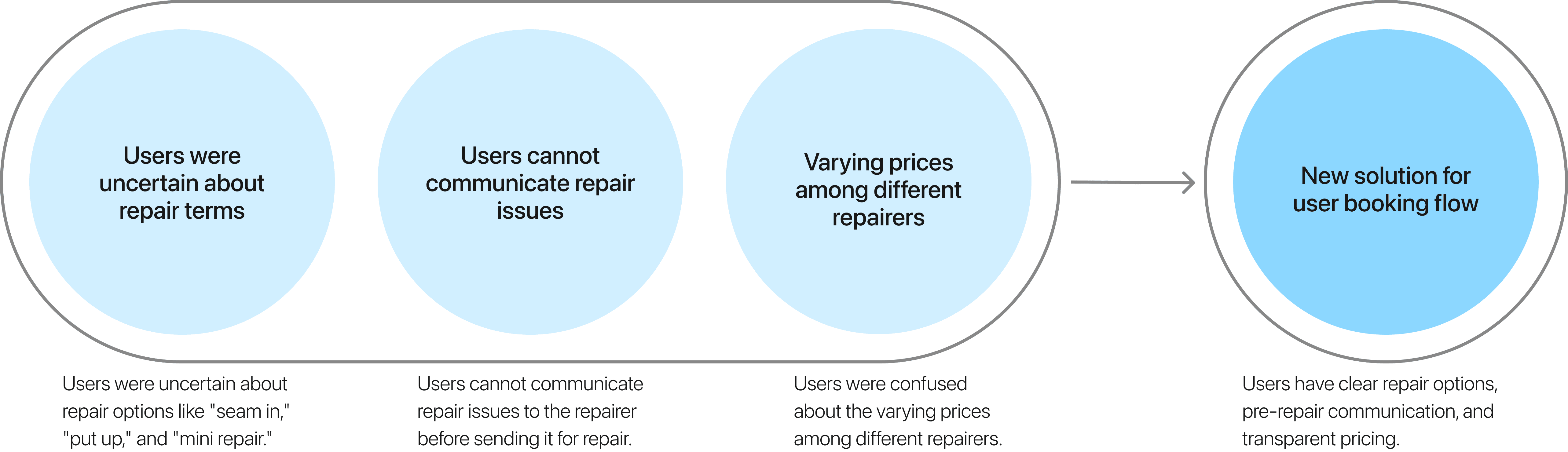 To help users understand pricing options, we held a workshop with the Product Owner and our repair partners. We introduced two standardized pricing options based on repair size to clarify that it is about size rather than quality, making it easier for users to choose the right repair service.