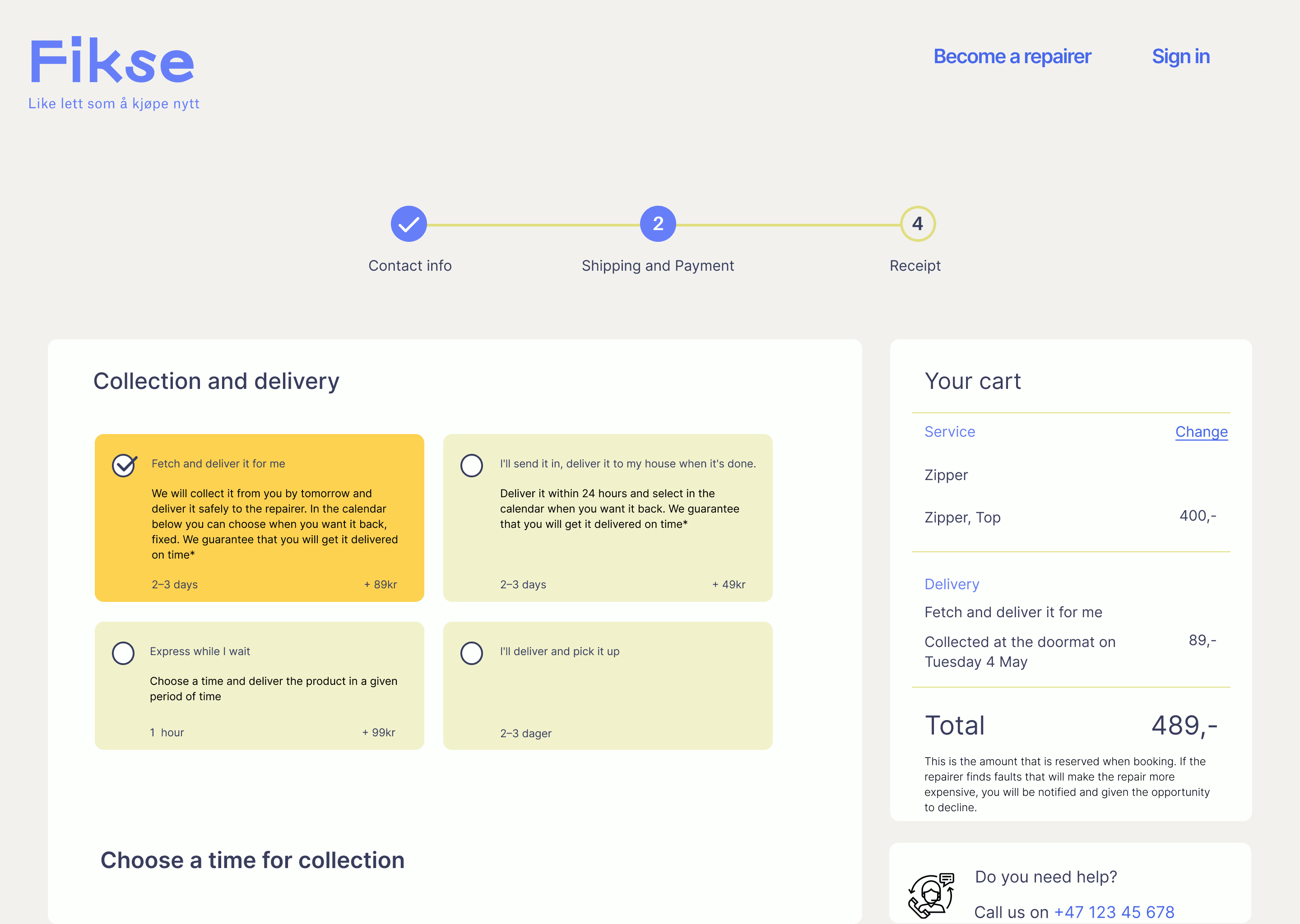 After thinking it over, Marie decided to visit the nearest Fikse tailor in person to discuss the repair details, opting not to make an online booking and payment.