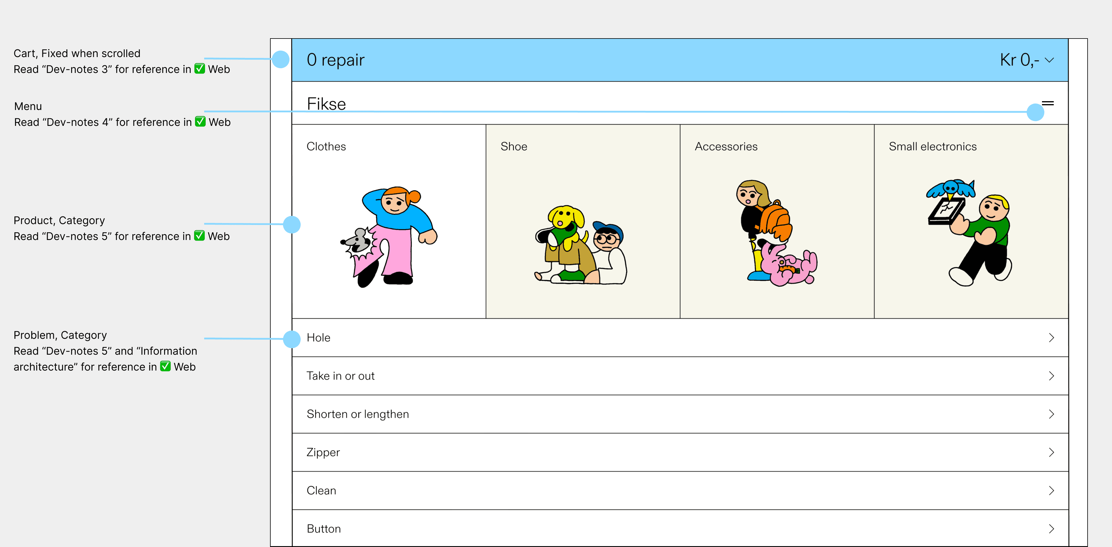 I included detailed design notes to assist engineers in estimating the effort required for each feature and design element. Using our design system, I specified the components and styles in the "Dev Notes," along with their respective pages for easy reference.